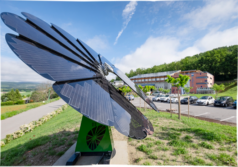 L’ensemble du bâtiment a été construit en fonction du respect de l’environnement. Réel choix de société et de confort de vie à l’intérieur de l’usine, tout a été prévu dans un objectif qualitatif environnemental. A noter par exemple que le terrain répond à une parfaite orientation : Sud-Ouest, de même son adossement à la colline a permis d’enfouir une partie de l’usine (le stockage) afin de bénéficier d’une régulation naturelle économe.